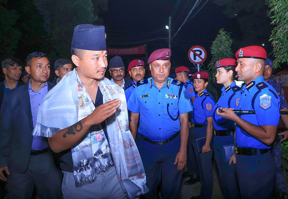 गृहमन्त्री गुरुङ मध्यरातमा भरतपुरमा : प्रहरी शिक्षालयको निरीक्षण